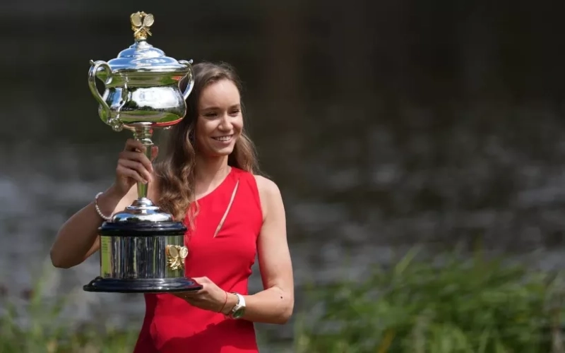 Пятая ракетка мира Елена Рыбакина приняла участие в традиционной чемпионской фотосессии с трофеем Australian Open.