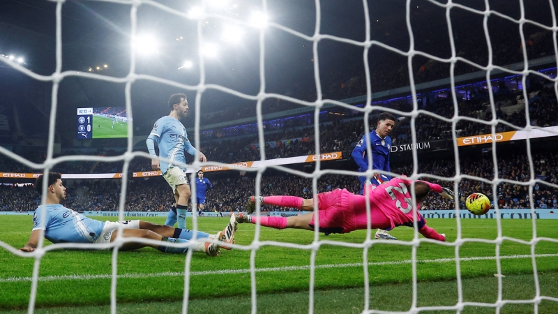 И тем не менее первый опасный момент создал «Челси» — Педру Нету прорвался по бровке и прострелом нашел в штрафной Эстевао, чей удар накрыл Гвардиол. «Сити» тут же ответил своим выпадом, когда Фоден убрал мяч под любимую левую, но немного не попал в дальний угол.