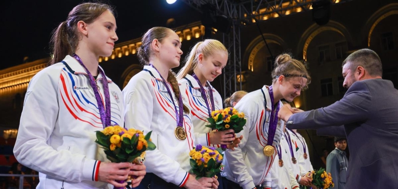 Таким образом, женская сборная России выиграла Игры стран СНГ в третий раз подряд. В 2021 году в Казани чемпионками стали Екатерина Лялина, Анастасия Пиженко, Анастасия Рыкова и Виктория Трофимова, в 2023-м в Минске – Анастасия Олаири Косу, Анастасия Щеколдина, Яна Эльберг и Мария Яцемирская.